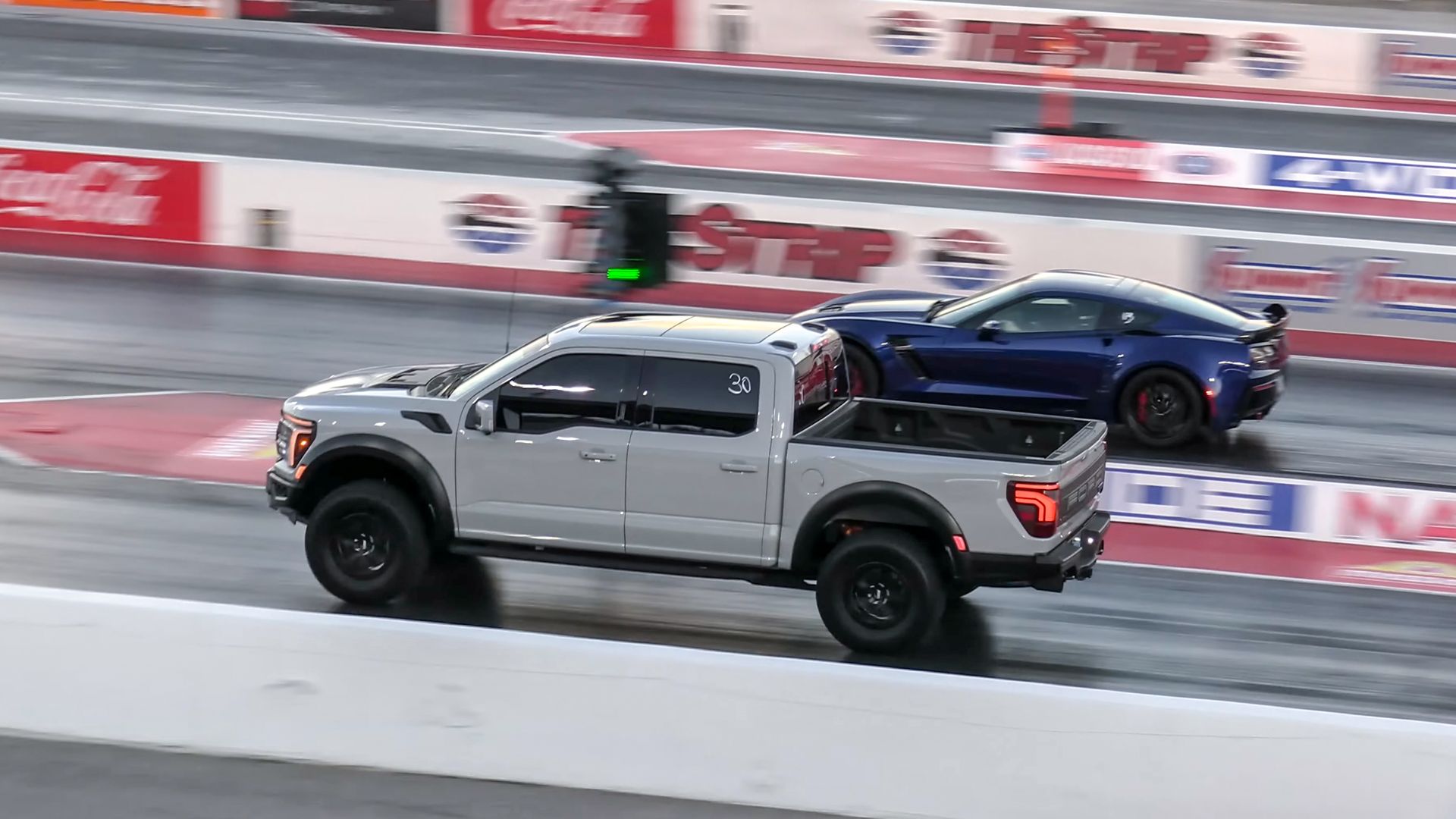 Chevrolet C8 Stingray and C7 Corvette Z06 take on 2025MY Ford Raptor in quarter-mile drag race