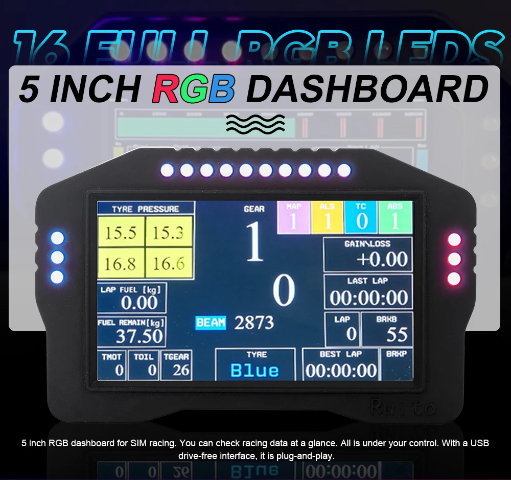 케이블 자체SIM 레이싱 카의 5 인치 RGB 대시 보드에는 터치 스크린 기능이있어 레이스를 볼 수 있습니다.
