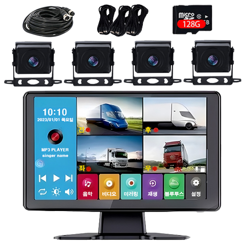 카이루스 10.1인치 4채널 터치 화물차 블랙박스 AHD 1080p 800만화소 카메라 4개 전원선 128G 트럭 차량 풀세트
