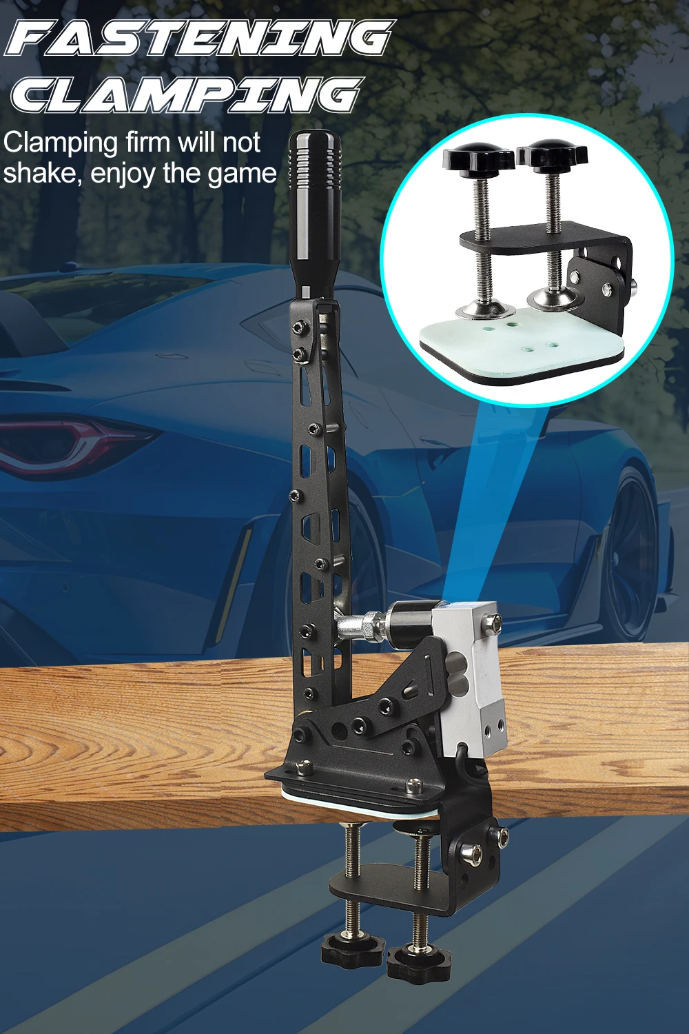 MAD HORNETS 14Bit PS4/PS5 레이싱 게임용 USB3.0 SIM 핸드 브레이크 스티어링 휠 스탠드 Thrustmaster T300RS 블랙 + 클램프 키트