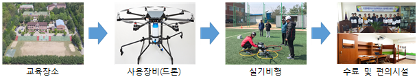 • 드론교육 전용시설 및 장비구비, 실기평가조종자/지도조종자(교관)를 통한 드론 조종능력 습득